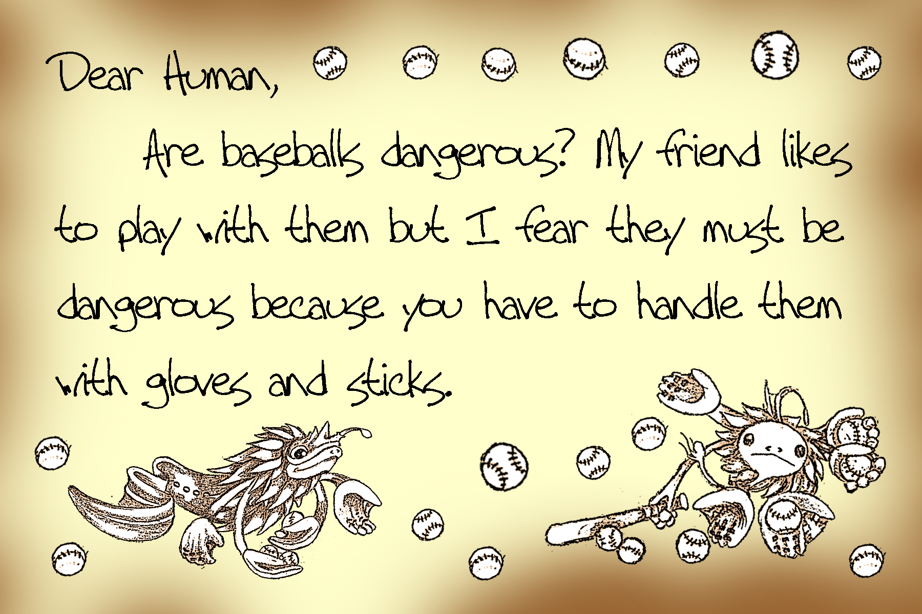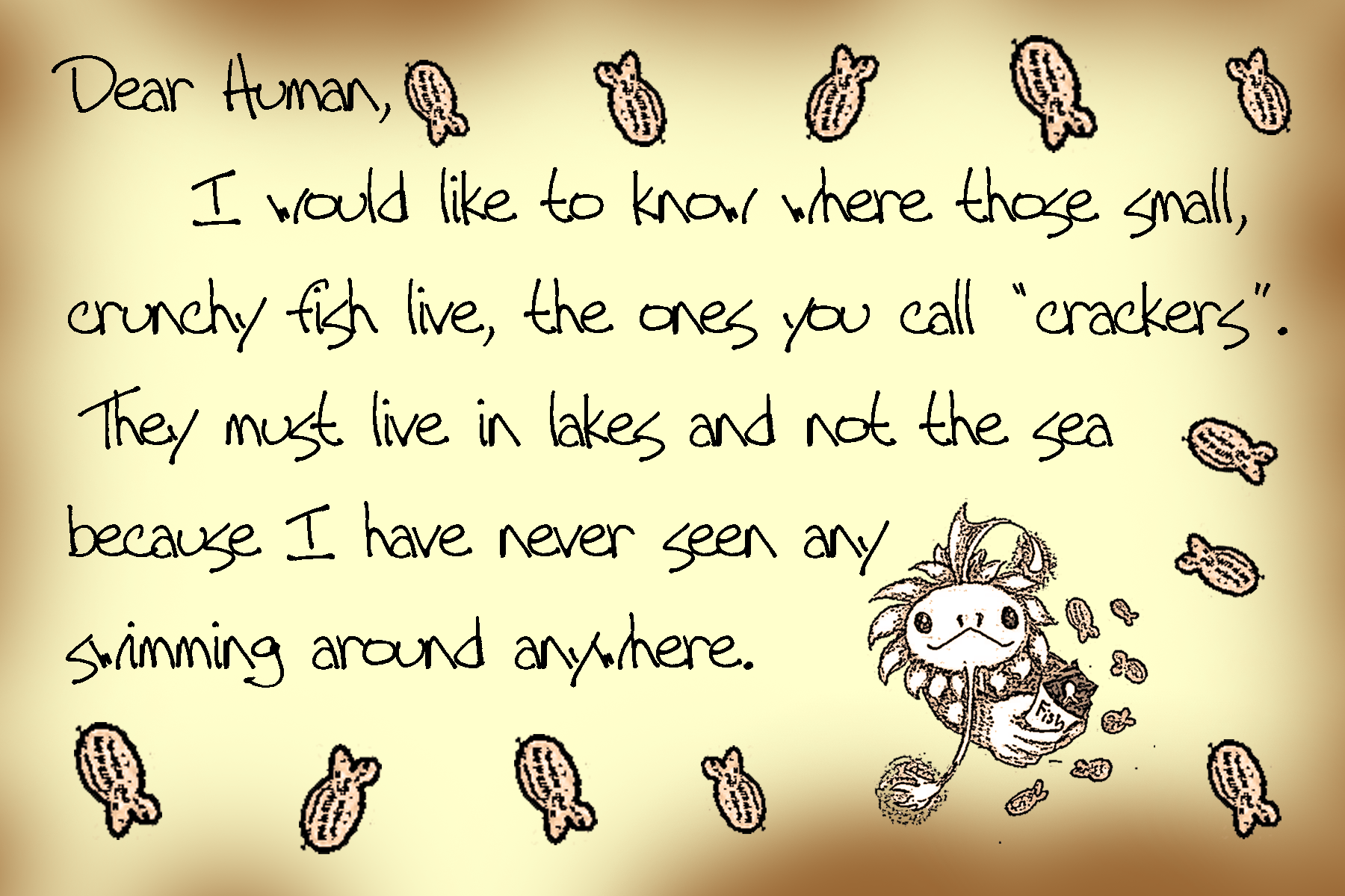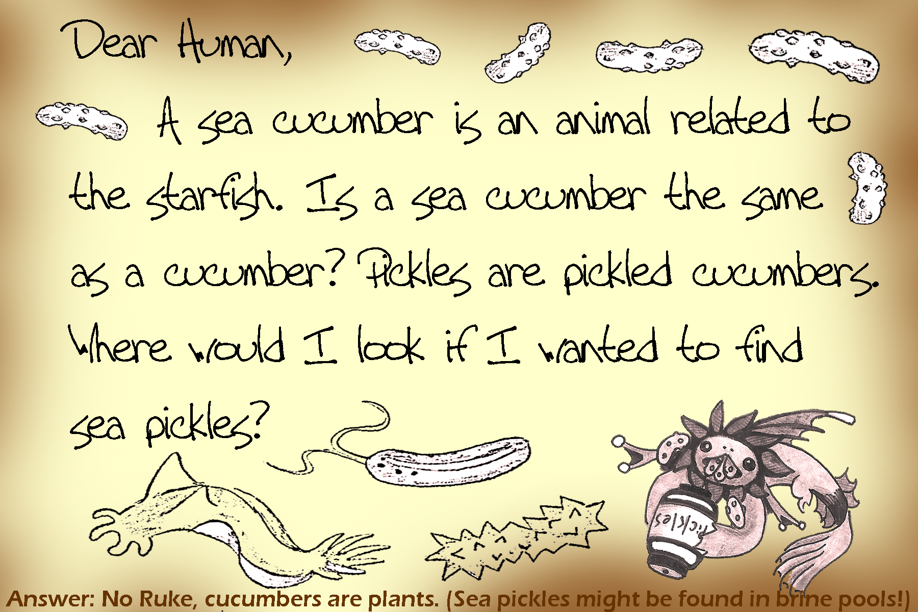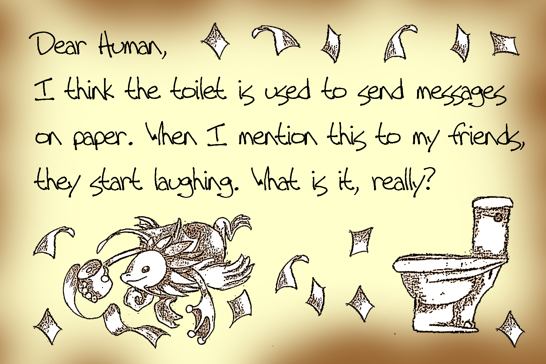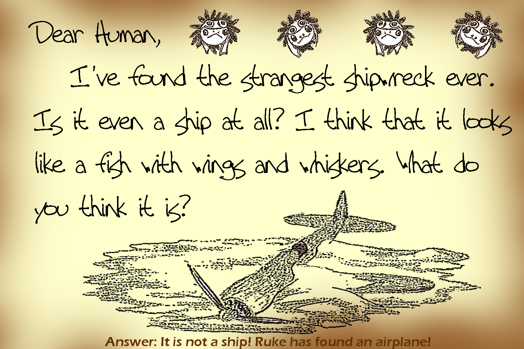 Bottled Messages Dear human, I’ve sent many letters in bottles to the ocean surface. You may have found some of my letters! If not, here are all thirteen of my letters! Share this: Click to share on X (Opens in new window) X Click to share on Facebook (Opens in new window) Facebook Like Loading...